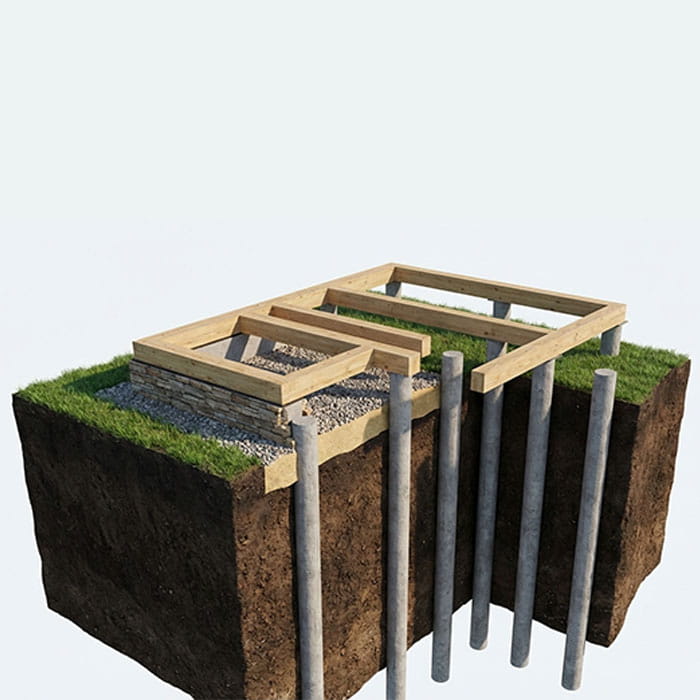 Мы используем буронабивные сваи с обязательным армированием и объединяем их монолитным ростверком. Это создаёт жёсткий каркас, который равномерно распределяет вес здания. Часто такой тип выбирают под каркасные дома, дома из газобетона и объекты с нестандартной планировкой.