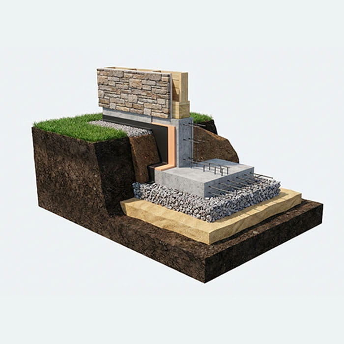 Мы применяем комплексный подход: горизонтальная отсечная гидроизоляция под стены, обмазочные и рулонные материалы по наружной поверхности, при необходимости — дренаж по периметру. Для фундаментов с цоколем или подвалом дополнительно усиливаем защиту, чтобы исключить сырость и протечки.
